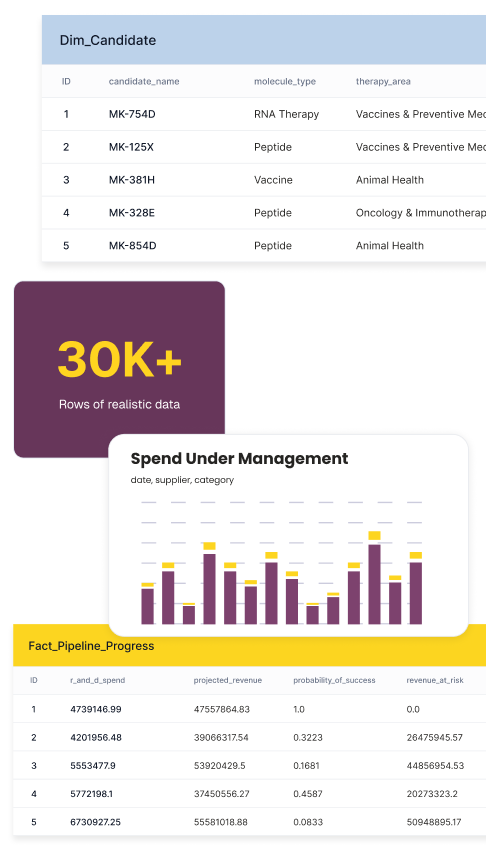 Download demo data as CSV files and upload to any Cloud Data Warehouse.